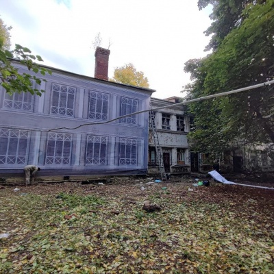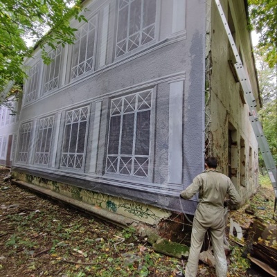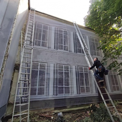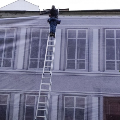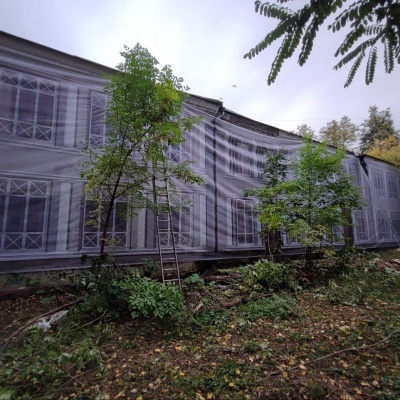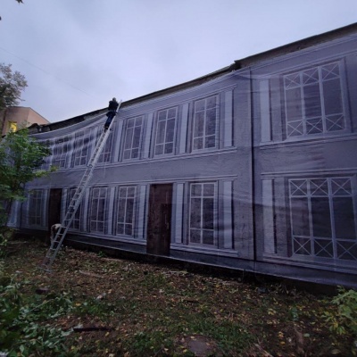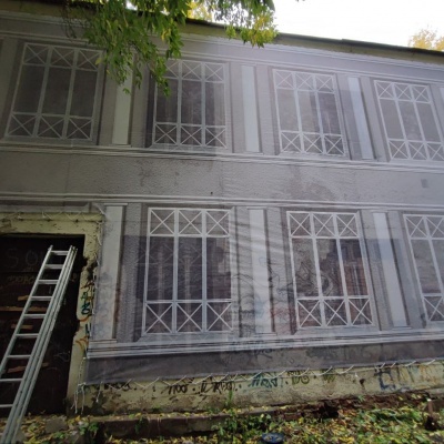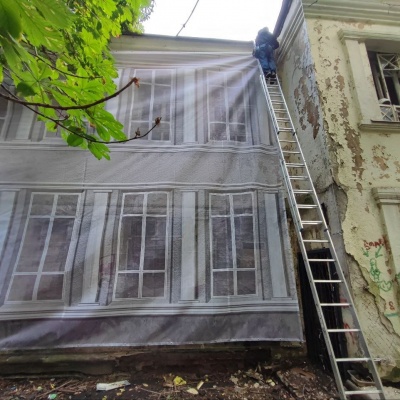 Монтаж фальшфасада на заброшенном здании в Москве