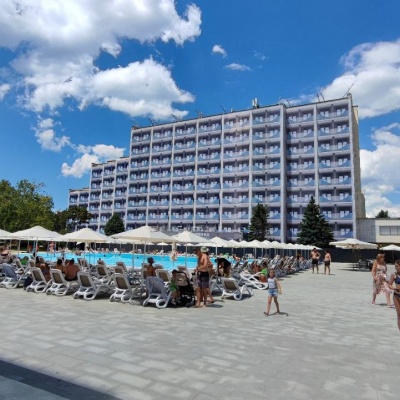 Печать и монтаж фальшфасада на гостинице в Анапе