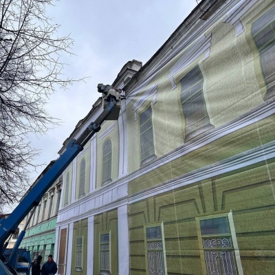 Цена изготовления фальшфасада на баннерной сетке от 210 руб за м2