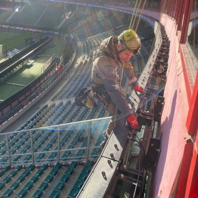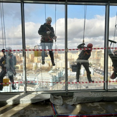 Вылетали для оформления стадионов и монтажа фальшфасада на старые высотные здания.