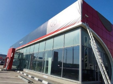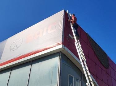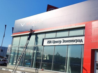 Фото и видео по кейсу: Демонтаж логотипа и букв с фасада здания и монтаж баннера на автосалоне в Зеленограде.