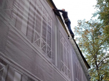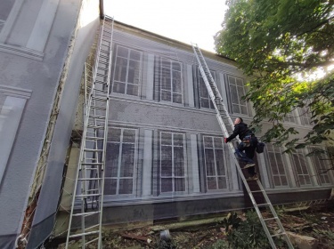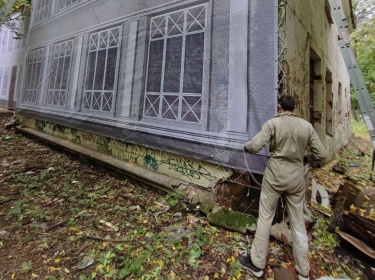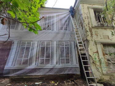 Фото и видео по кейсу: Монтаж фальшфасада на безрамной конструкции. Москва, Спиридоновка 19А, Здание заброшенного детского садика в центре Москвы.