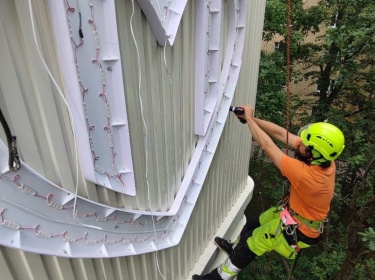 Фото и видео по кейсу: Монтаж вывесок сердце, на фасад обновленных поликлиник. Ленинградское шоссе 39 стр. 10, Москва